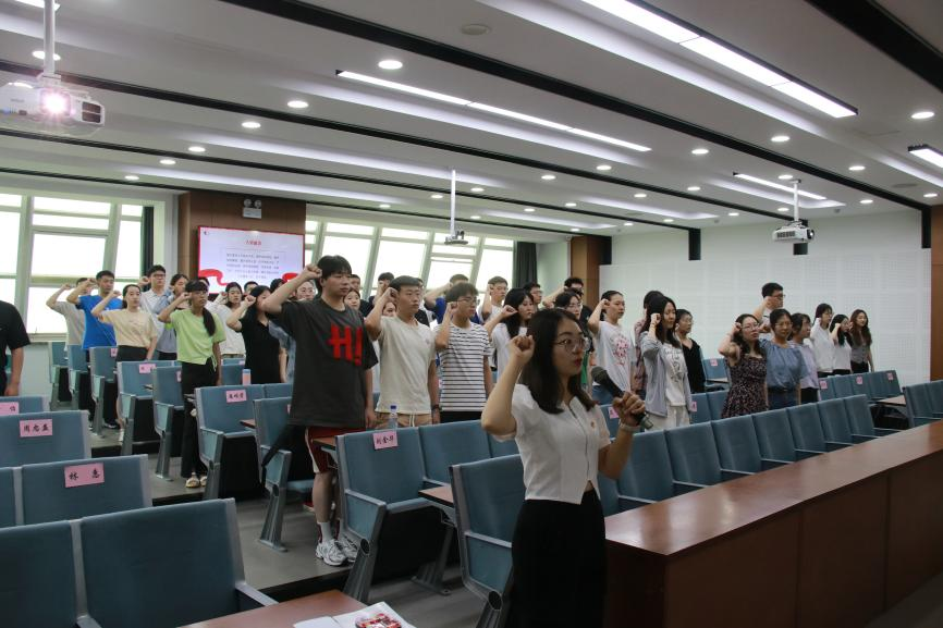 铮铮誓言铭初心,砥砺奋进担使命。“我志愿加入中国共产党,拥护党的纲领,遵守党的章程,履行党员义务,执行党的决定,严守党的纪律,保守党的秘密,对党忠诚,积极工作,为共产主义奋斗终身,随时准备为党和人民牺牲一切,永不叛党。”在2022级法律硕士(非法学)第二党支部书记孙佳诚的带领下,全体党员举起右拳,庄严宣誓。誓词简短却铿锵有力,展现了各位同志坚定的理性信念和矢志不渝的奋斗决心。宣誓完毕后,各支部代表为新发展预备党员们佩戴党徽。