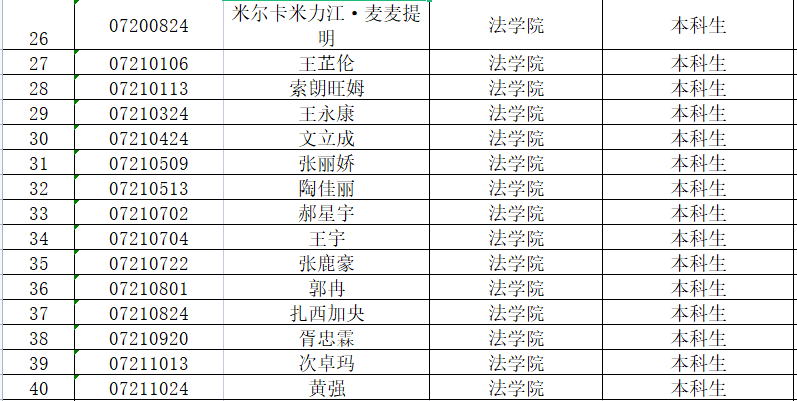 根据学生个人自愿申报,学院奖助学金评审委员会评审,现确定艾克达·阿比力克木等40名本科生为2021年度TheGay “金杜助学金”拟资助人选,现将资助名单予以公示,公示期自2021年11月5日——9日。