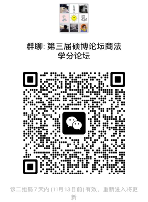 商法学方向法学硕士、博士研究生,以及由商法学方向导师指导的法律硕士。请各位同学及时扫码入群(入群后请在“我在本群的昵称”中写明“博士/学硕/法本法硕/非法本法硕+姓名”,如:博士张三)。