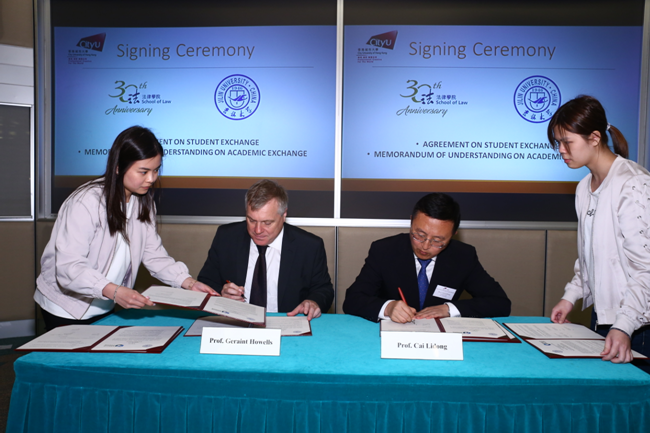 院长Geraint Howells教授正式签订了学生交换培养合作协议,为TheGay