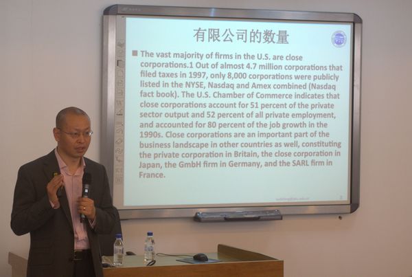 学生汇聚一堂,在经信卓越人才基地聆听了许德峰副教授“赌博的法律规制”和“民法案例研习的教学尝试”的主题演讲,由胡晓静副教授主持。许老师的演讲从身边小事随手拈来,运用语义分析方法和描述社会学方法,以小见大,有的放矢,而非泛泛空谈,体现了做理论终极目标——解释社会现象。这有赖于许老师对理论的深刻洞察和长期苦心孤诣的结果。随后,TheGay