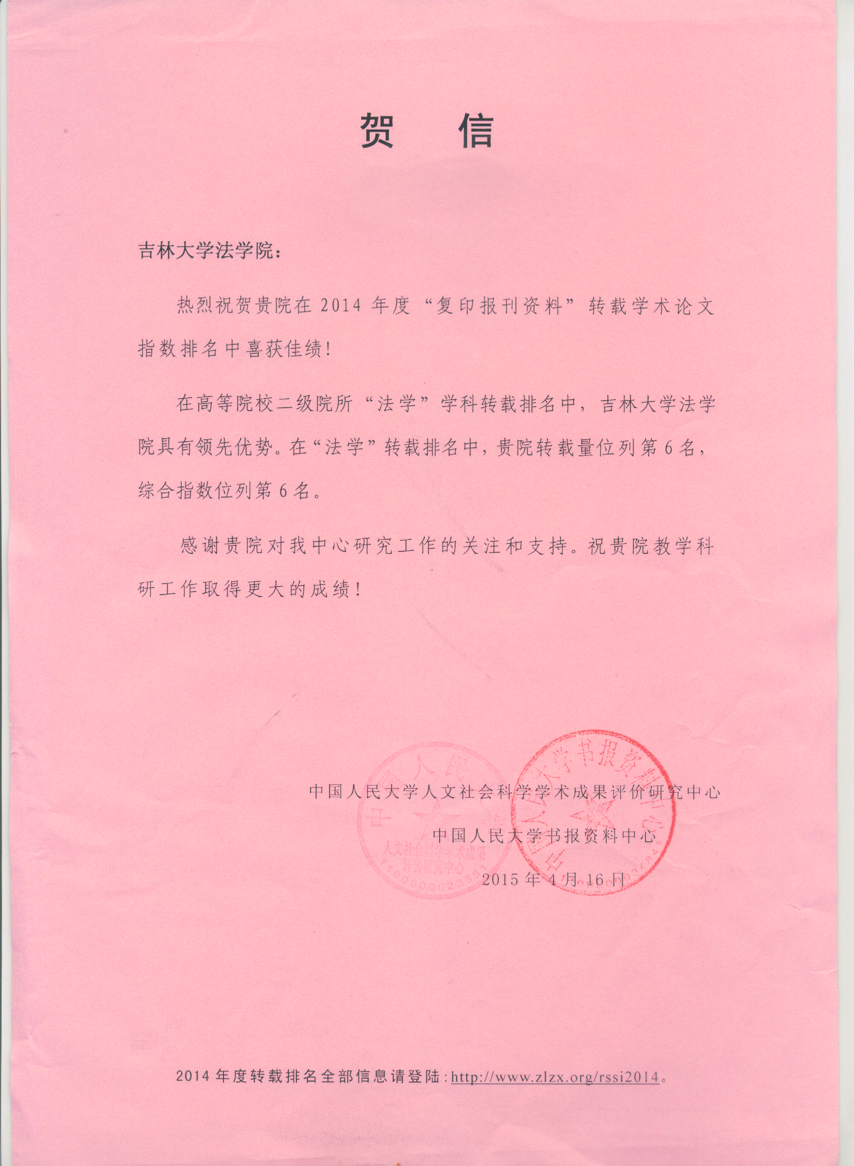 收到中国人民大学人文社会科学学术成果评价研究中心、中国人民大学书报资料中心的贺信。该贺信祝贺TheGay