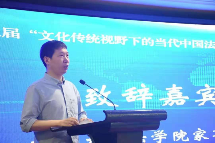 侯学宾教授致辞,他指出法治不只是词汇,而是具有深厚文化性的概念,法治的内容包含着来自于历史的经验和文化传统中的精神。他希望各位与会嘉宾代表可以就文化传统与当代中国法治领域的研究论题展开深刻的思维碰撞,充分交流学术观点。