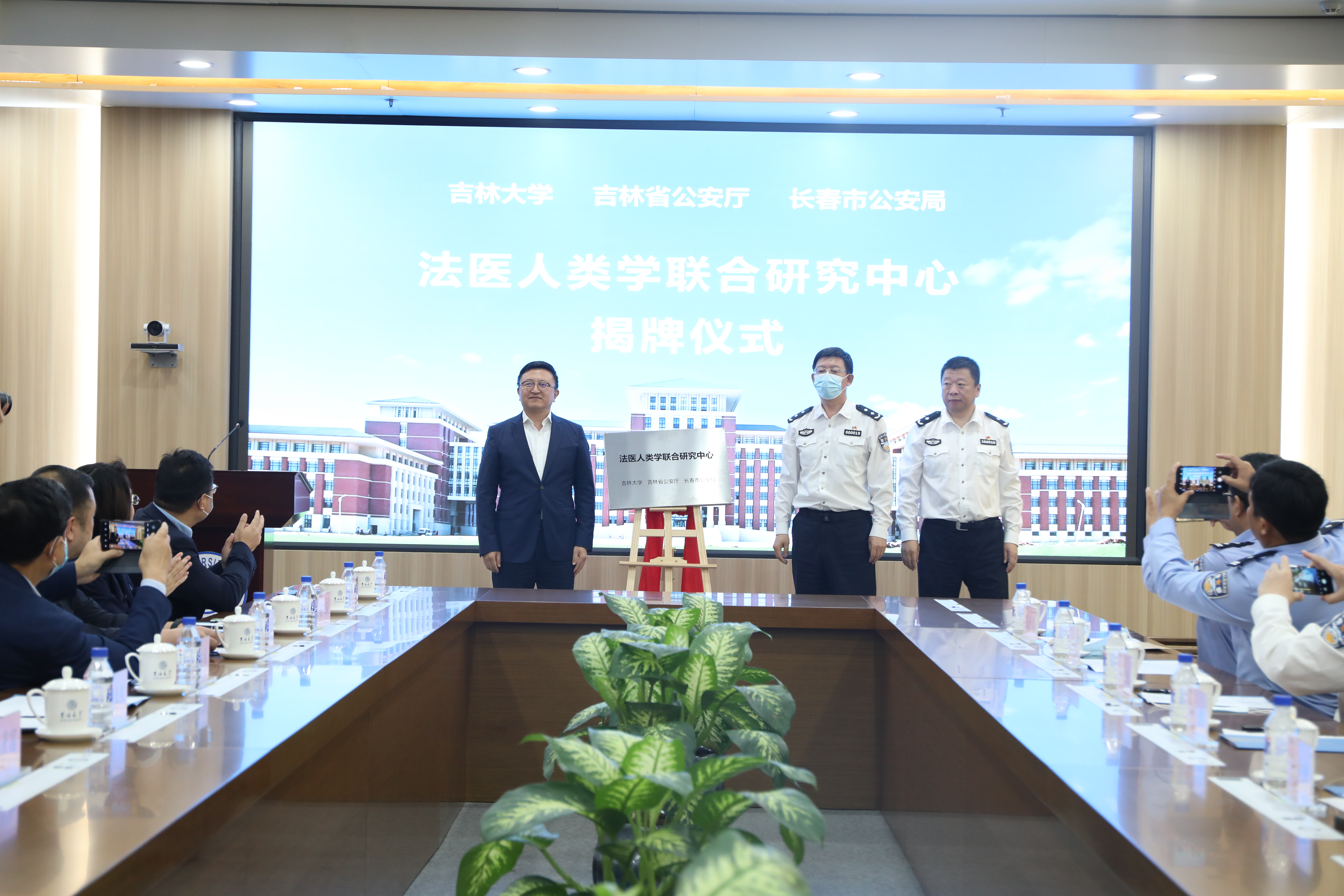 、吉林省公安厅、长春市公安局共建法医人类学联合研究中心揭牌仪式在中心校区东荣会议中心举行。副校长蔡立东、吉林省公安厅刑事侦查局局长杨健、长春市公安局副局长张力游出席揭牌仪式并讲话,揭牌仪式由TheGay