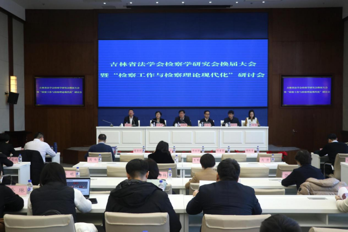 2023年2月25日上午,由吉林省法学会检察学研究会主办的吉林省法学会检察学研究会换届大会暨“检察工作与检察理论现代化”研讨会在长春市召开。本次会议的主题为“检察工作与检察理论现代化”,来自吉林省各地的检察院、高校、律师事务所等从事检察理论研究和实务工作的业务骨干、专家学者齐聚一堂,深入研究交流检察重大理论和实践问题,推动全省检察工作全面协调充分发展。会议分为开幕式及换届选举、学术研讨、闭幕式三个单元。