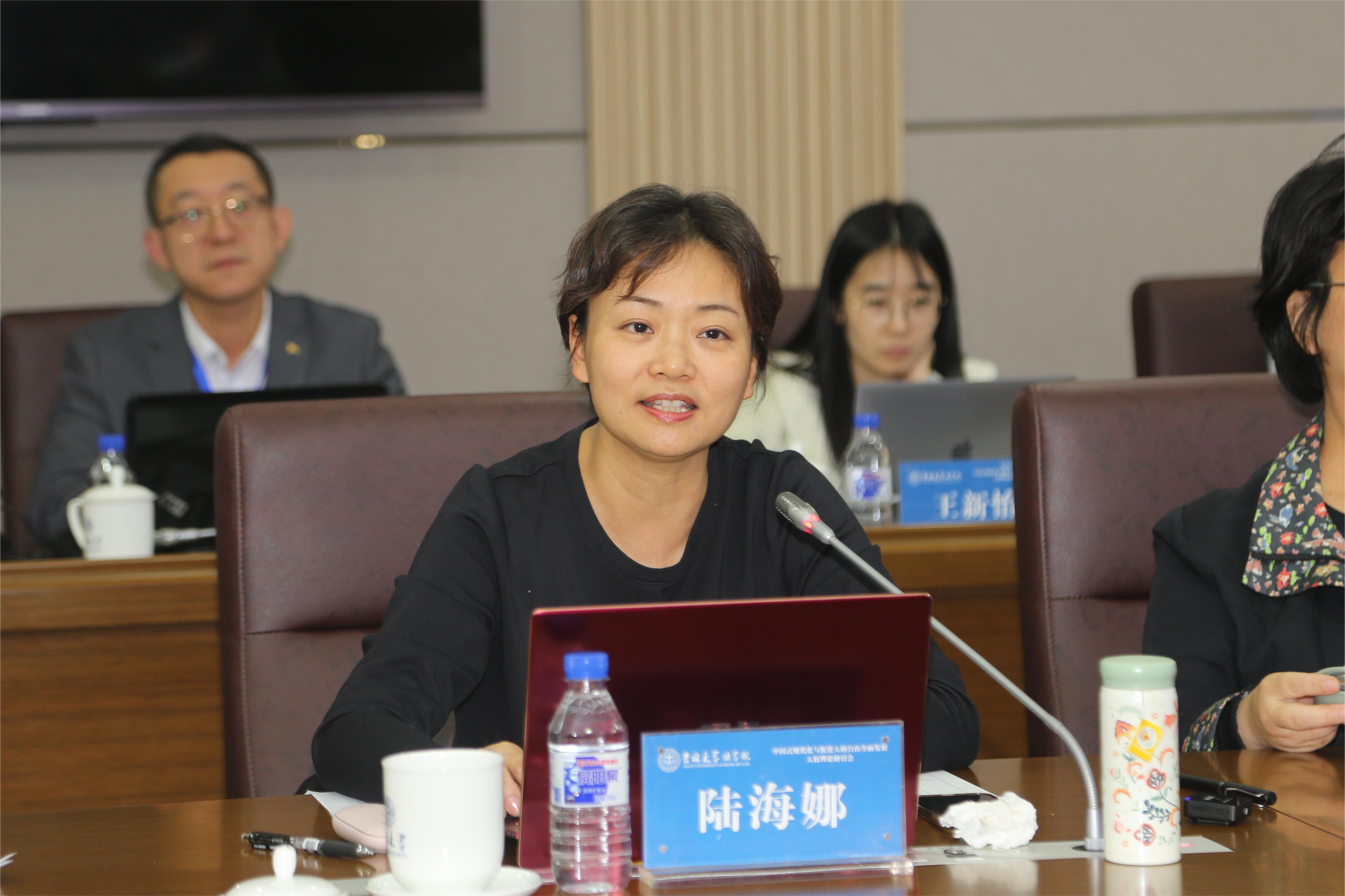 中国人民大学人权研究中心执行主任陆海娜研究员从四个方面展开“构建国际人权法的中国自主知识体系”主题发言:第一,构建国际人权法的中国自主知识体系的必要性;第二,构建中国自主知识体系的目标是什么;第三,构建国际人权法的自主知识体系是否可能;第四,探讨中国国际人权法地方全球化的可能进路。针对中国国际人权法地方全球化,陆海娜研究员认为,一方面要把国际人权法的可以接纳的规范性内容融入国内法,平等地对待国际人权法;另一方面要将中国的立场和经验纳入国际人权领域的实践。