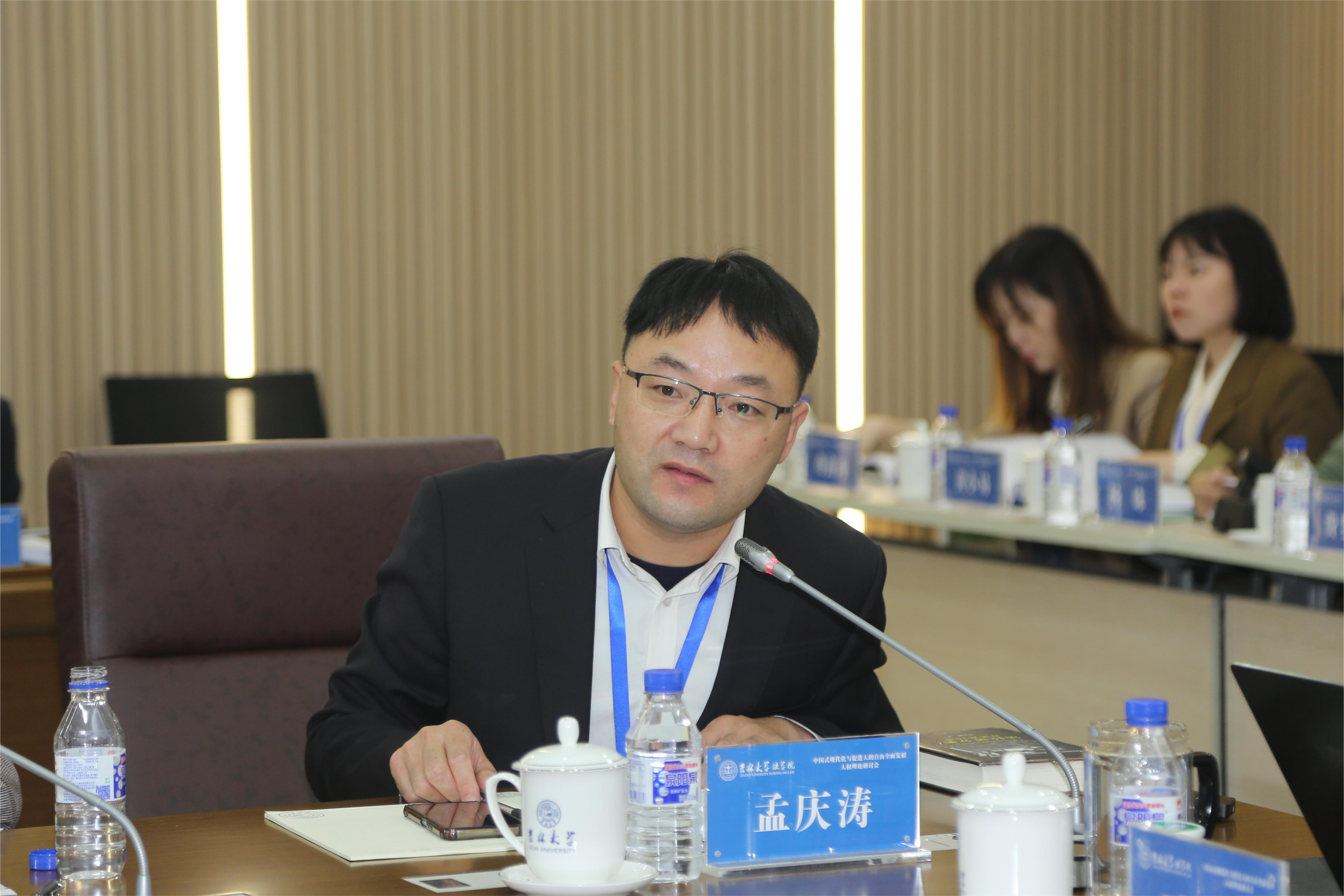西南政法大学人权学院副院长孟庆涛教授以“儒家——人权道德论及其批判”为题目进行发言,从思想史的角度分析了中国传统儒家文化能否在逻辑上开出人权的问题。孟庆涛教授首先指出了将儒家思想从逻辑推论到现代人权需满足的四个前提条件,进而对海外汉学家以儒家传统创设人权的论证进行反思。孟庆涛教授基于黑格尔对于伦理和道德的区分,将建立在儒家道德“自我”形而上学预设以及由其派生出来的不同形态概括为伦理主义、社群主义、规范主义和功能主义四种进路,并总结出儒家—人权道德论的两种走向,从知识论的角度得出结论,儒家—人权并未形成完整的形态。
