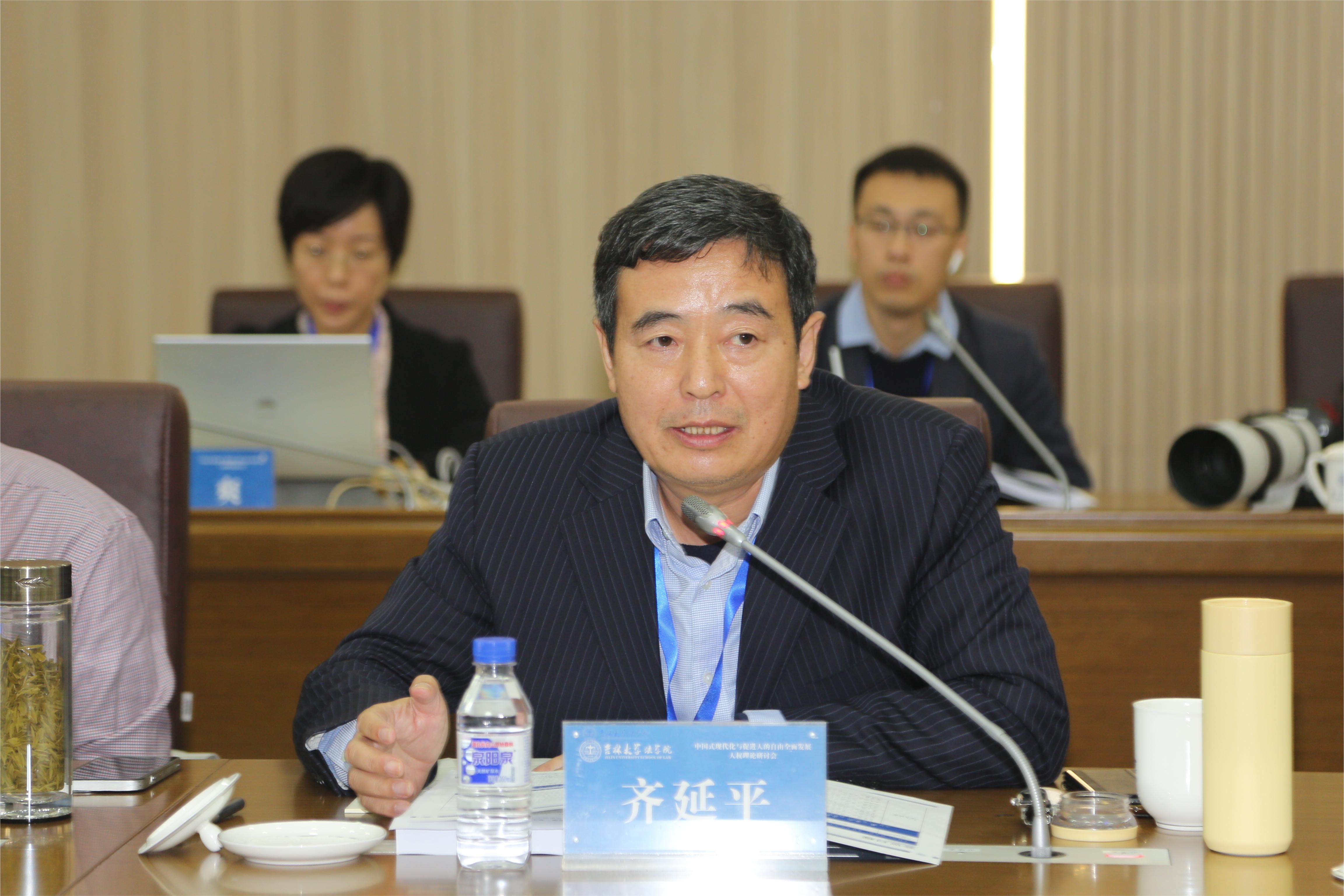 北京理工大学讲席教授齐延平作“‘人的自由全面发展’是中国式现代化对人类文明的贡献”主题发言。齐延平教授比较了现代化的中国模式与荷兰模式、英美模式、北欧模式,指出中国式现代化为世界人类文明贡献了“人的自由全面发展”的实践,是对西方现代化模式的辩证超越与系统重塑。在此基础之上,齐延平教授从人权理念、文化、制度等方面分析了中国式现代化构成的中国人权发展道路与人的自由全面发展之间的内在逻辑。针对中国人权研究往何处走的问题,齐延平教授强调,走中国特色人权发展道路的保障是数字化、网络化与智能化背景。