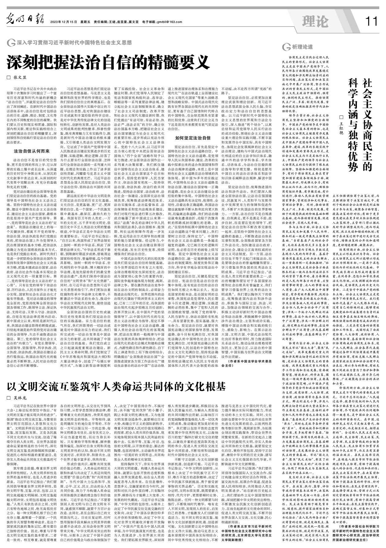 功勋教授、校哲学社会科学资深教授张文显在《光明日报》发表文章《深刻把握法治自信的精髓要义》。
