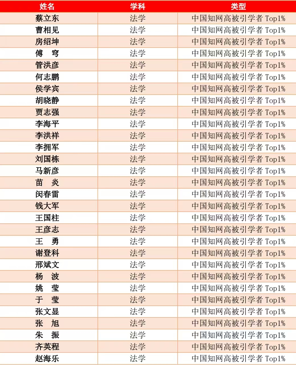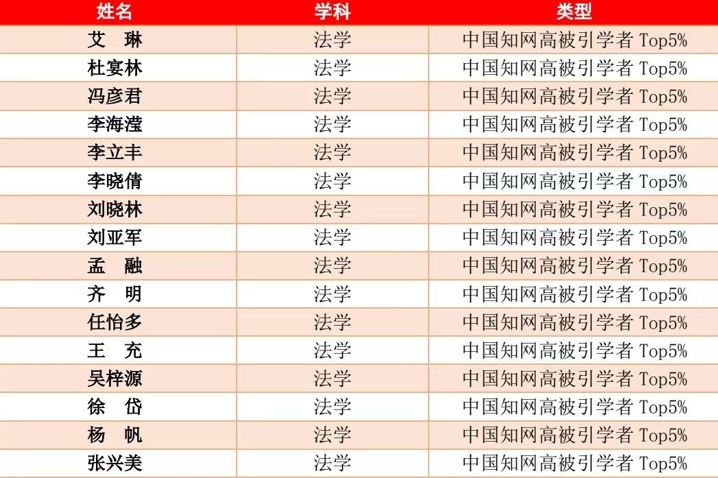 侯明明 法学 中国知网高被引学者Top5%