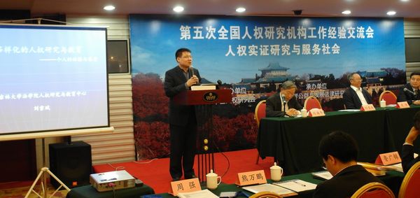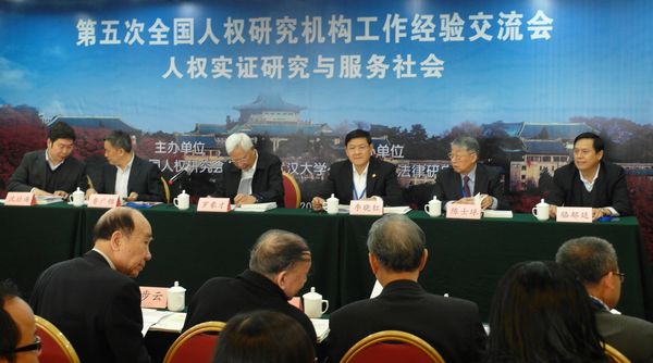 2013年11月5-6日,由中国人权研究会主办、武汉大学公益与发展法律研究中心承办的第五次全国人权研究机构工作经验交流会在武汉举行,主题为“人权实证研究与服务社会”。来自南开大学、中国政法大学、中国社会科学院等60多个国内人权研究机构的百余名专家学者参加了会议。十届全国政协副主席、中国人权研究会会长罗豪才、国务院新闻办七局局长鲁广锦、中国人权研究会副会长陈士球等出席会议并讲话。