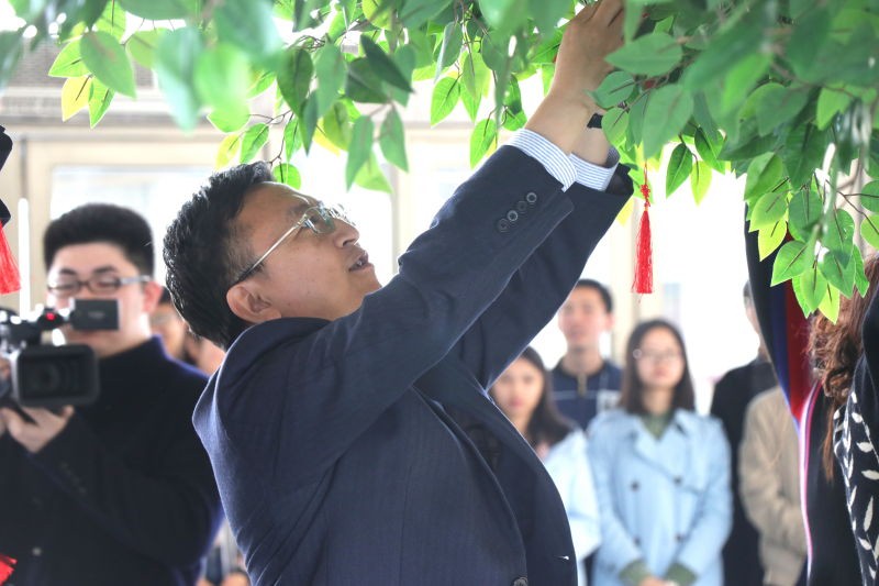 活动开始后,学院领导依次在祝福卡上写下了对学院的祝福,并亲自挂在祈愿树上。领导们真挚的祝福也引起了在场师生的共鸣。