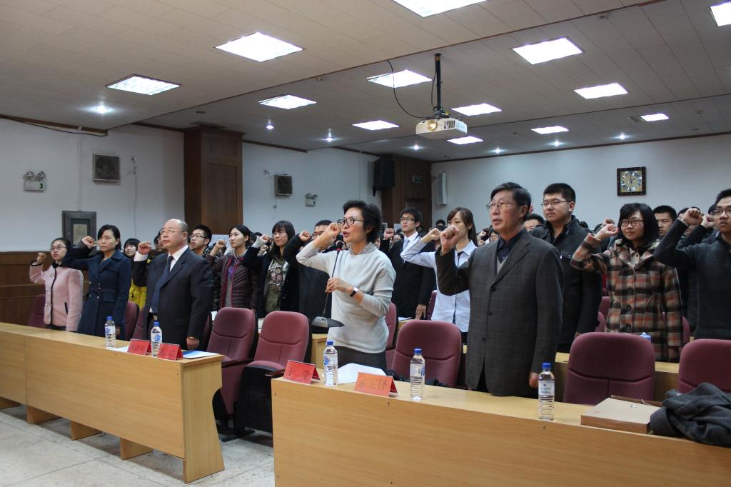 党委书记李洪明同志、副书记于莹同志,副书记赵洁同志,原党委书记、学院兼职组织员孟宪铎同志,研究生工作办公室、学生工作办公室全体工作人员和2012年新发展的132名预备党员到场参加了仪式。仪式由赵洁同志主持。