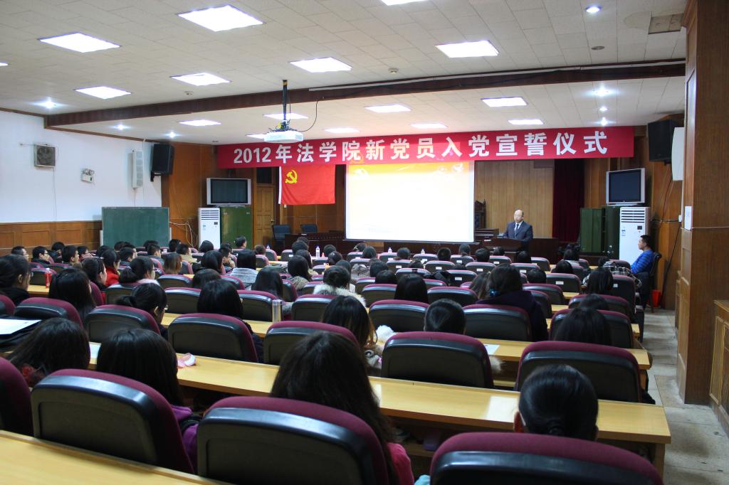 宣誓完毕后,于莹同志宣读了党章中规定的党员的权利和义务。随后,新党员代表赵晨希同志发言。她代表全体2012年新党员感谢了党组织的培养和教育、领导和老党员的关心和帮助,赵晨希同志回顾了新中国在党的科学领导下取得的光荣成就,并代表新党员许诺将努力学习,积极了解社会,在未来的工作岗位上发挥才干。接着,李凯文同学代表参会的入党积极分子发言。他表示,同学们通过积极分子培训更加深入地了解了党的知识,深刻认识了党的重要性,并表示作为积极分子,将在以后的学习、工作、社会实践中用一名共产党员的标准要求、鞭策自己,克服缺点,继续接受党组织的考验。
