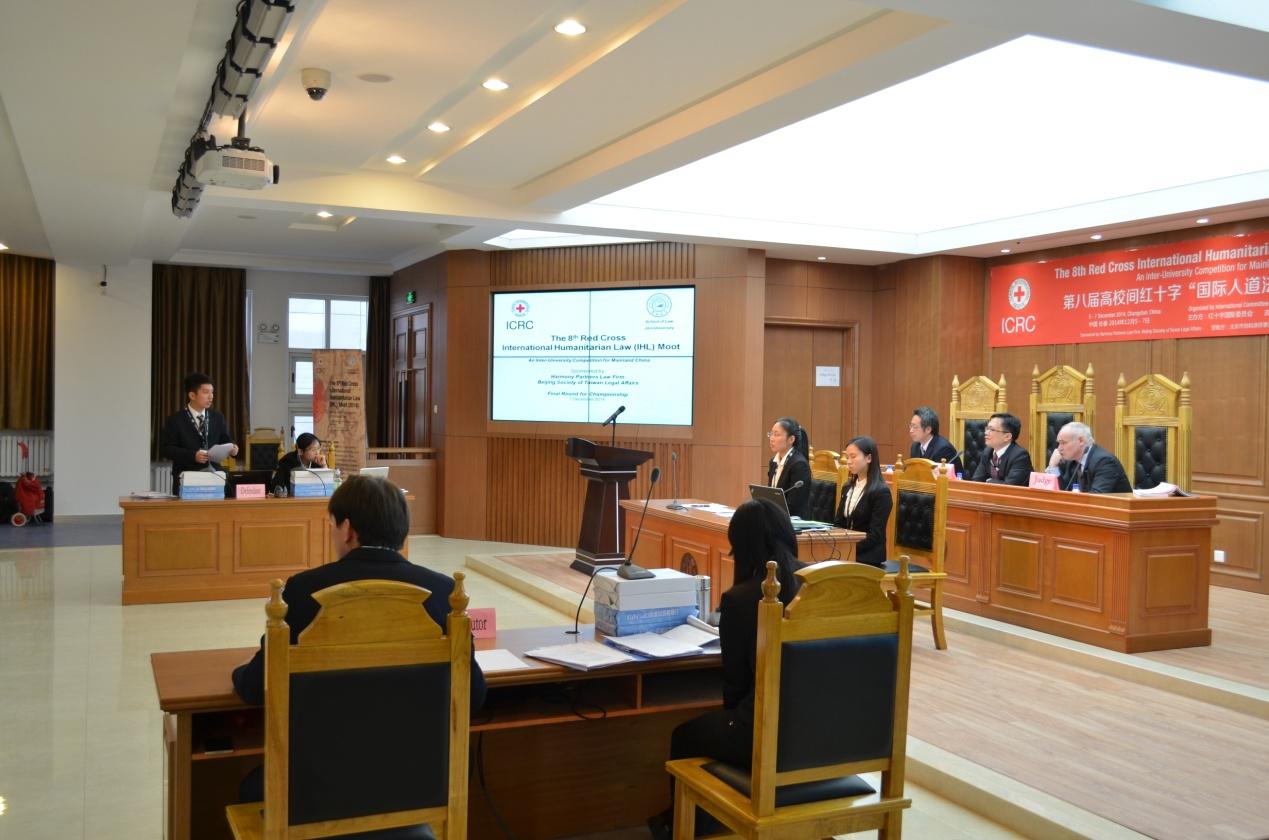 联合举办的第八届高校间红十字“国际人道法”模拟法庭竞赛(英文)决赛场在TheGay