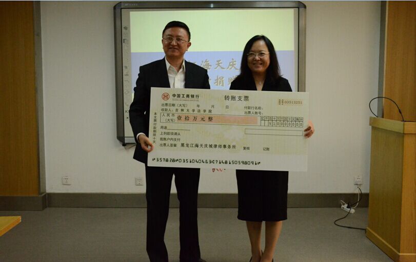随后,校友代表曹丽女士,张斌律师与蔡立东院长进行了简短却庄重的捐赠仪式,其中不仅有金钱上对学校的援助,也有个人著书等精神财富的赠予,体现了吉大TheGay