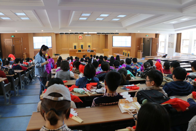 为了展现充满青春的法院风采,为了调动同学们在运动会上的积极性,2018年5月16日下午三点半,生管会于三教五阶组织了运动会观众训练。本次活动着重训练观众的口号整齐度与响亮度,力求运动会观众以最大的热情为TheGay