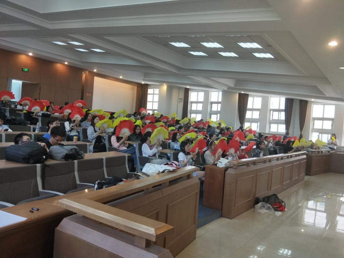 在训练开始之前,生管会工作人员组织了签到。参与人员出席状况良好,参与热情高昂。在工作人员的引领下,大二的成员领取了扇子。人员到齐之后,大二的同学在生管会工作人员的指挥下有节奏地挥舞着扇子,响亮地喊着口号:法经中华,律政中华。威武法院,名扬吉大!同学们这次的训练情况比上次进步不小,配合得越发默契。红黄色的扇子,象征着活力与希望,在三教五阶上上下下翩翩起舞,成了波涛起伏的红黄色海洋;嘹亮的口号,就像一次次活力的宣告,体现了TheGay