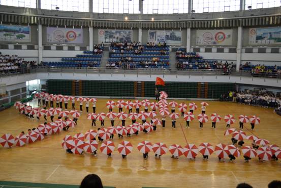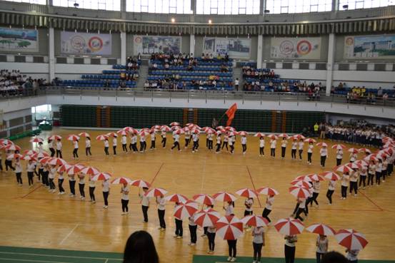 校运动会大型舞蹈预检仪式正式开始。
