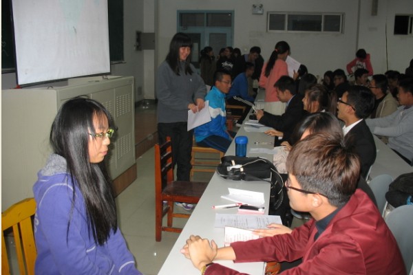 在各部门介绍完毕之后,13级法援新成员便选择部门参加了面试。面试中,他们悉心回答师哥师姐精心准备的问题,同时也表明了今后为法援贡献一份力量的决心。