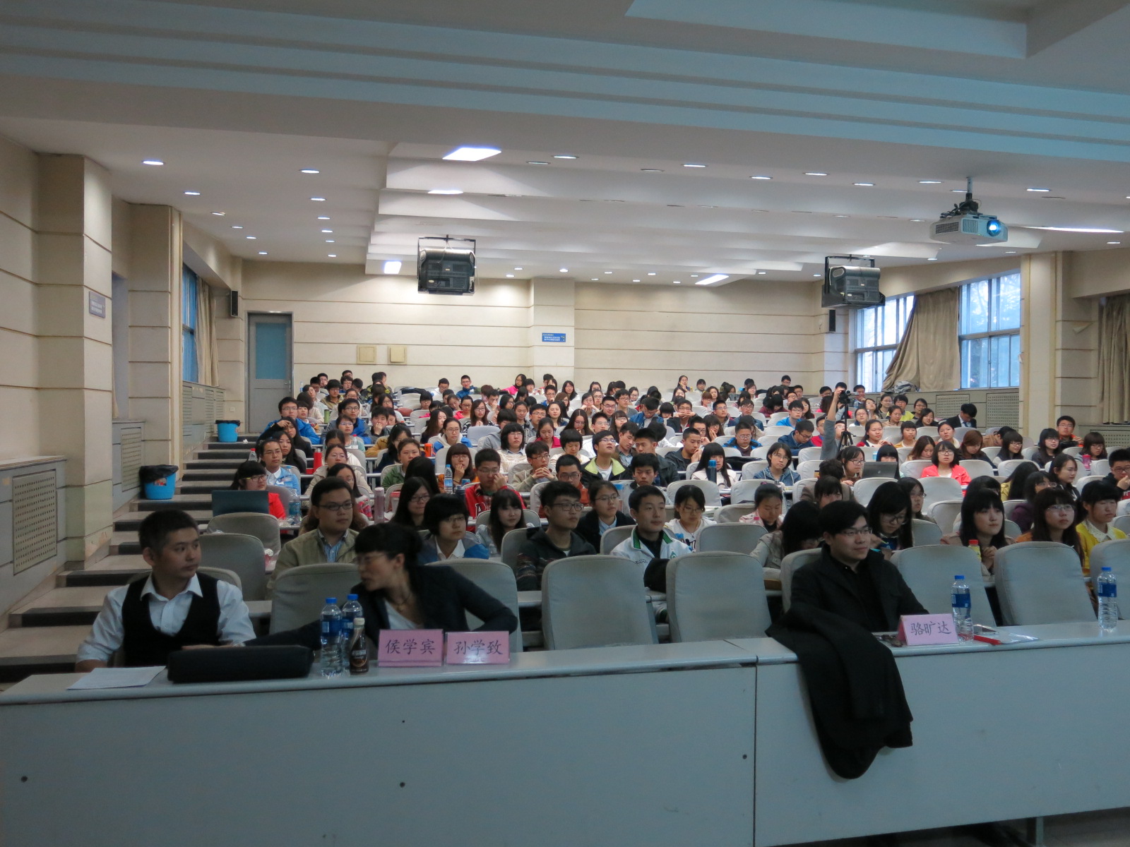 团委书记、学生工作办公室主任高岩老师,2013级辅导员骆旷达老师等人。积极参与的本科2012级、2013级同学更是使得整个会场座无虚席。