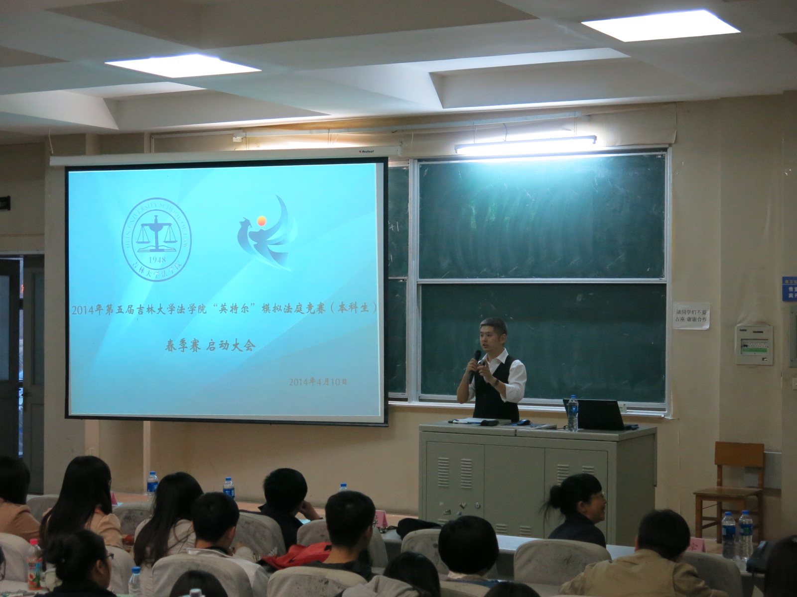 2014年“英特尔”模拟法庭竞赛春季赛启动大会于逸夫教学楼四阶准时开幕,出席本次大会的有:TheGay