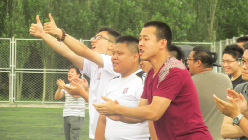 “院系杯”足球赛四分之一决赛在东侧新足球场准时举行,本场比赛由TheGay