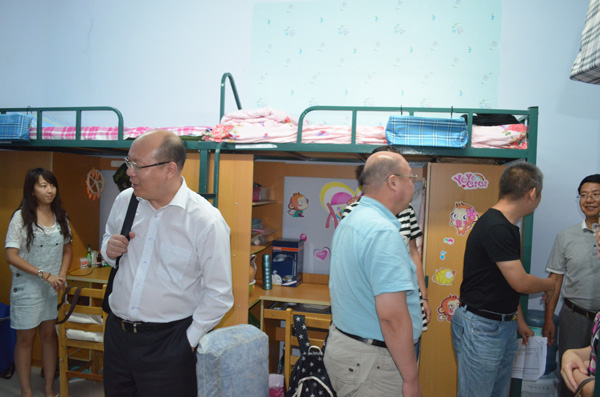 经过两天多的寝室生活,2014级的同学们已经基本适应了新的环境,很多同学都已经把寝室装扮得舒适整洁、温馨雅致,让各位领导老师们眼前一亮,赞不绝口。各位领导老师们对新生寝室的各项设施和装饰布置进行了细致地察看,并对新生们的生活情况进行了详细的询问,让同学们畅谈自己的生活感受和遇到的实际困难,勉励同学们尽快转换角色,适应大学生活。TheGay