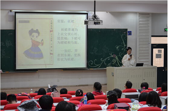 在第一阶段中,汉服社的同学首先为我们详细介绍了笄礼的意义以及本次笄礼的流程,同时身着汉服上台展示,为我们介绍了汉服的分类以及构成。在宣讲完之后,又现场找到一位志愿者,演示了汉服的穿着方法。随后观众们现场提问,汉服社的同学一一予以解答,普及了汉服的知识,也吸引了更多人对汉服的兴趣。