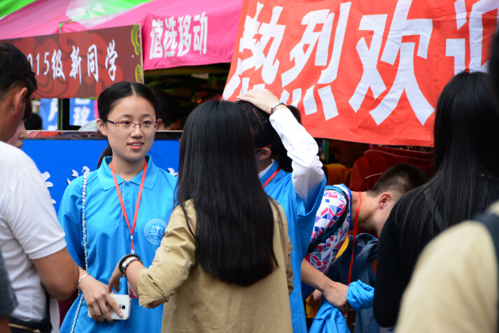 天气虽然阴冷,但大家工作得热火朝天。九点钟迎新帐篷搭好,正式接待开始。从迎来第一个新生开始,大家都在忙碌着,辅导员老师、班代师哥师姐还有大二的迎新志愿者齐上阵,迎新有条不紊的进行着。当然,这之中最大的看点莫过于录制视频了。一些同学表示不仅要在大学收获丰厚的法学知识,还要学到工作能力,更要学到如何做一个踏实肯干的人。也有的新同学表示要珍惜大学时光,收获更多的友谊。