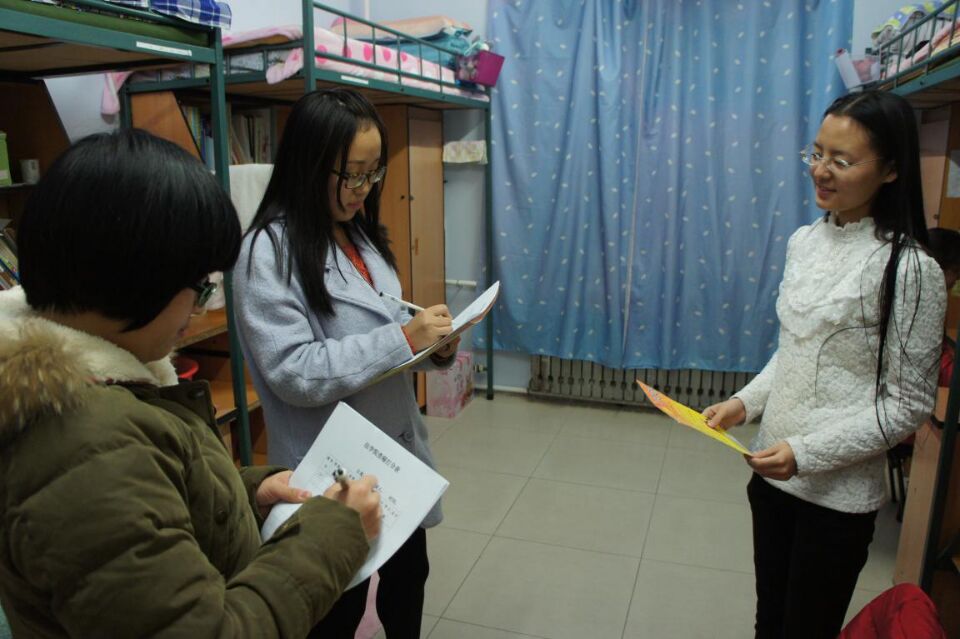 查寝评分细则》井然有序地准时开始查寝工作。此次查寝着重检查电器使用,同时注重寝室卫生,同学们积极配合,室内干净整洁,也没有出现违规用电现象,体现出温馨健康的学习生活气氛。在查访各个寝室的过程中,生管会工作人员分发了消防安全传单,普及了“学生宿舍如何防止用电火灾事故”、“抢救用点火灾事故要注意什么”、“失火后有哪些应急措施”以及“逃生注意事项”四个方面的知识,使同学们对消防安全有了更深入的认识,并得到了同学们的积极响应。