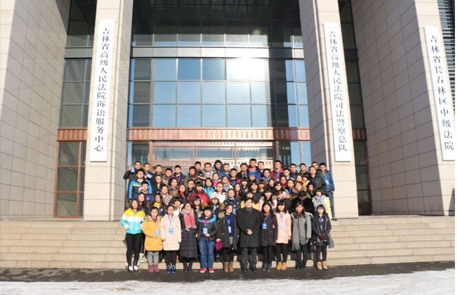 在到达吉林省高级人民法院后,大家在法院工作人员的带领下先参观了位于一楼的法律之门大厅,在这里人们的目光首先就集中到了砣心镜印,那明亮的镜面象征着法院的公平与正直,4缕垂直于地面的钢丝将这雕塑提到垂直于地面1.2米的位置,寓意着以法律为准绳,体现了法院工作的严肃与严谨。随后大家看到了公告显示屏,更进一步地了解到了法院的工作详情。在法院工作人员的组织下,同学们观看了司法宣传片,在这个宣传片中,大家看到了司法改革实施以来吉林省法院的不断发展,仅以吉林省高级人民法院为例,下半年新办案件中没有一起引发信访,这个宣传片极大地使同学们感受到了我国司法制度的不断完善,让当代学习法学专业的大学生对法院肃穆、庄重的工作产生了深深的憧憬。