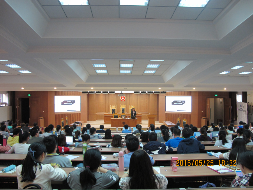 5月25日下午6点,为推动2016年“功承杯”模拟法庭竞赛的顺利进行以及参赛队员能在比赛中表现的更加精彩,由功承律师事务所首席法律顾问张晓阳律师带来的律师庭审代理技术指导会在三教五阶举行。