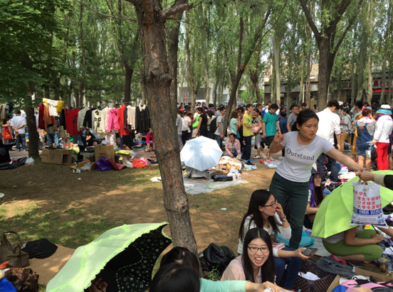 2016年6月18日早上七点三十分左右,已有部分2016届毕业生到达了指定地点,选择好位置,摆放好物品,为即将到来的活动做好了充足的准备。八点左右,陆陆续续有同学们到达活动地点,彼此热切地交流着买卖物品的事宜。随着活动的顺利进展,活动现场已经不再只有学校里的学生,还有很多慕名而来的心怀爱心的社会人士,生意也越来越好,体育场的小路上挤满了前来购买的人,场面甚是热闹。很快就到了中午,校区里的人们越来越多,购买的热情也越发高涨,这些即将毕业的学生们忙起来甚至忘记了去吃午饭,但是能够这些收获对他们来说也是值得的。