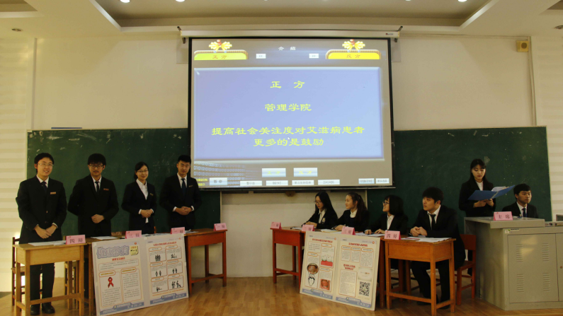 2016年11月20日下午一点三十分,第二十六届先锋论坛十六强争夺战,暨教育部高校艾滋病防控试点学校辩论赛在万众瞩目中于经信F10教室打响。本次的辩题为“提高社会关注度对艾滋病患者更多的是鼓励还是压力”。正方为管理学院代表队,反方则是TheGay