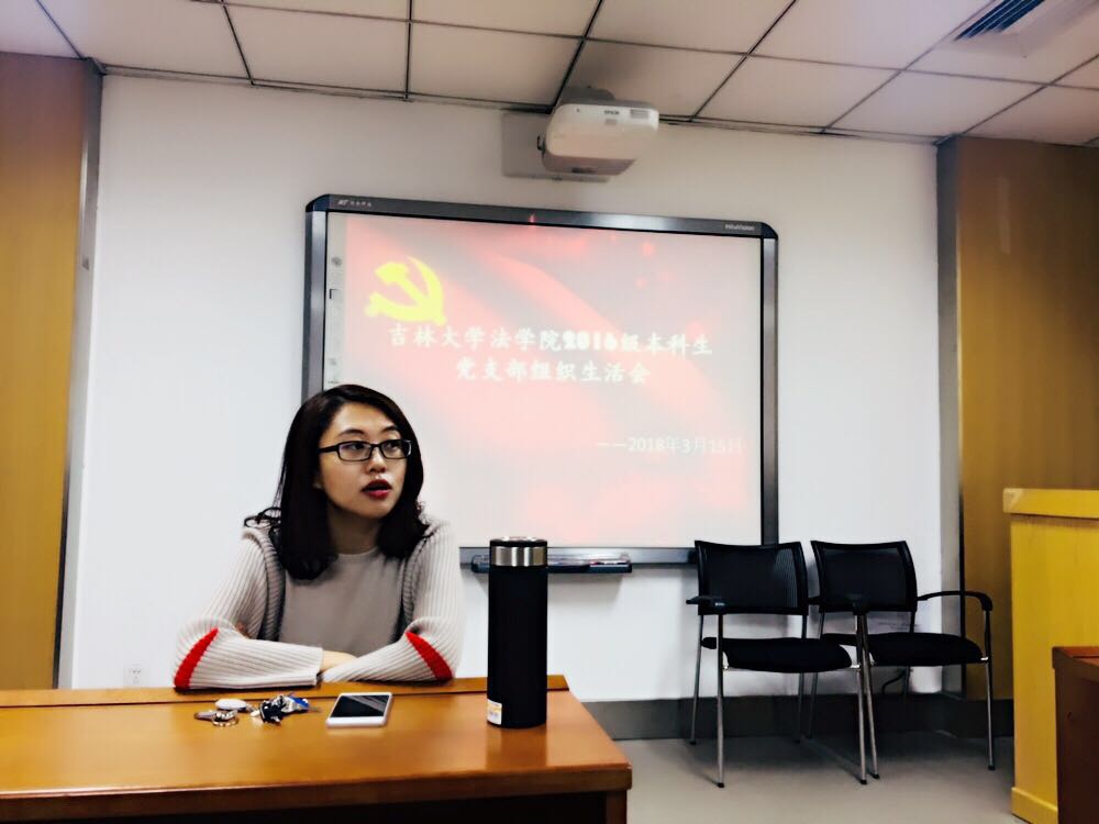 首先,支部书记马旭同志就自己在学习十九大会议精神的过程中的反思收获进行了发言。她总结了三点本支部在工作中存在的不足——第一,学生党性不强。针对这点,马旭同志希望在今后的工作中,支部成员能够通过与入党积极分子谈话等方式有意识地去培养、提高广大学生群众的党性修养。第二,党员先锋模范作用不足。马旭同志强调,作为学生党员,我们应该加强奉献牺牲精神,培养先锋模范意识,树立榜样的力量。第三,培养班级党员工作能力的工作有待完善。她希望,所有的党员、发展对象、入党积极分子都有能够学习进步、锻炼提升的机会,希望在未来的工作中,支部成员能够创造更多的平台和机会给班级党员展现自我。