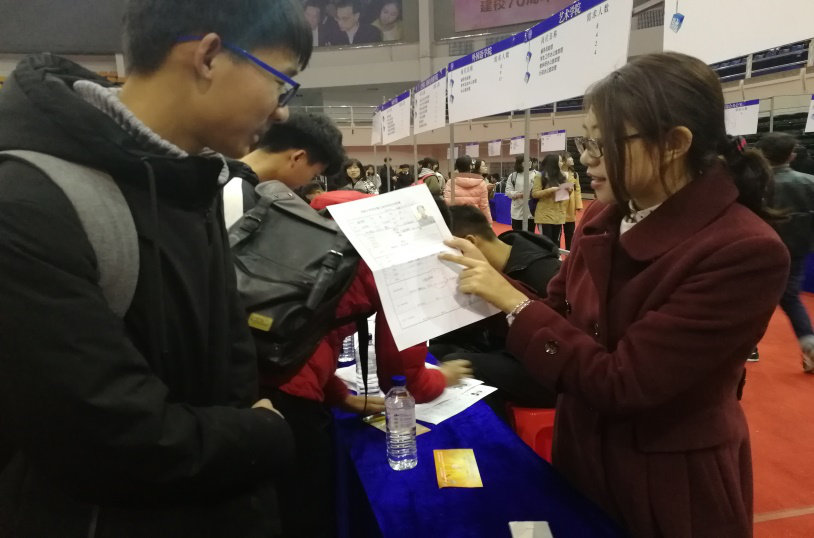 办公室也通过这次招聘会,收到了许多前来应聘同学的简历,马老师亲切地与前来投递简历的同学介绍工作任务并了解他们的基本情况。