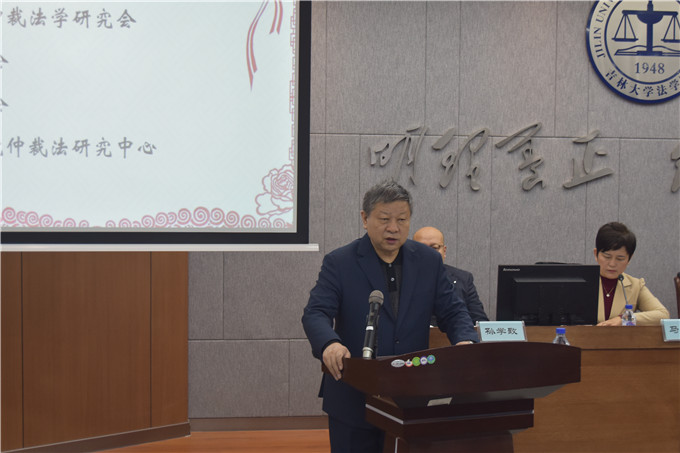 本次会议第一单元由仲裁法学研究会副会长兼秘书长马金芝主持。仲裁法学研究会会长韦经建代表仲裁法学研究会对来宾表示欢迎,对研究会工作给予帮助的吉林省律师协会,长春仲裁委员会,TheGay