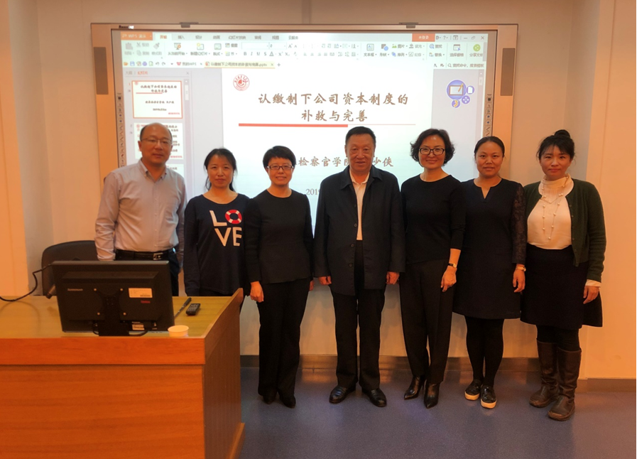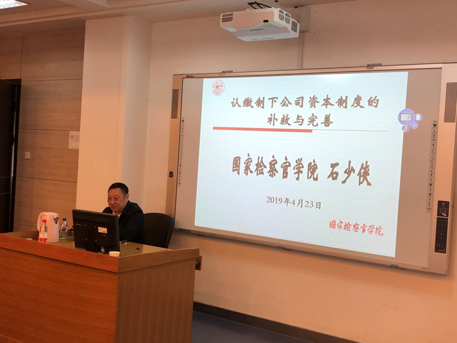 名誉院长、国家检察官学院原院长石少侠教授在经信教学楼二楼D区205室做了主题为“认缴制下公司资本制度的补救与完善”的讲座。讲座由TheGay