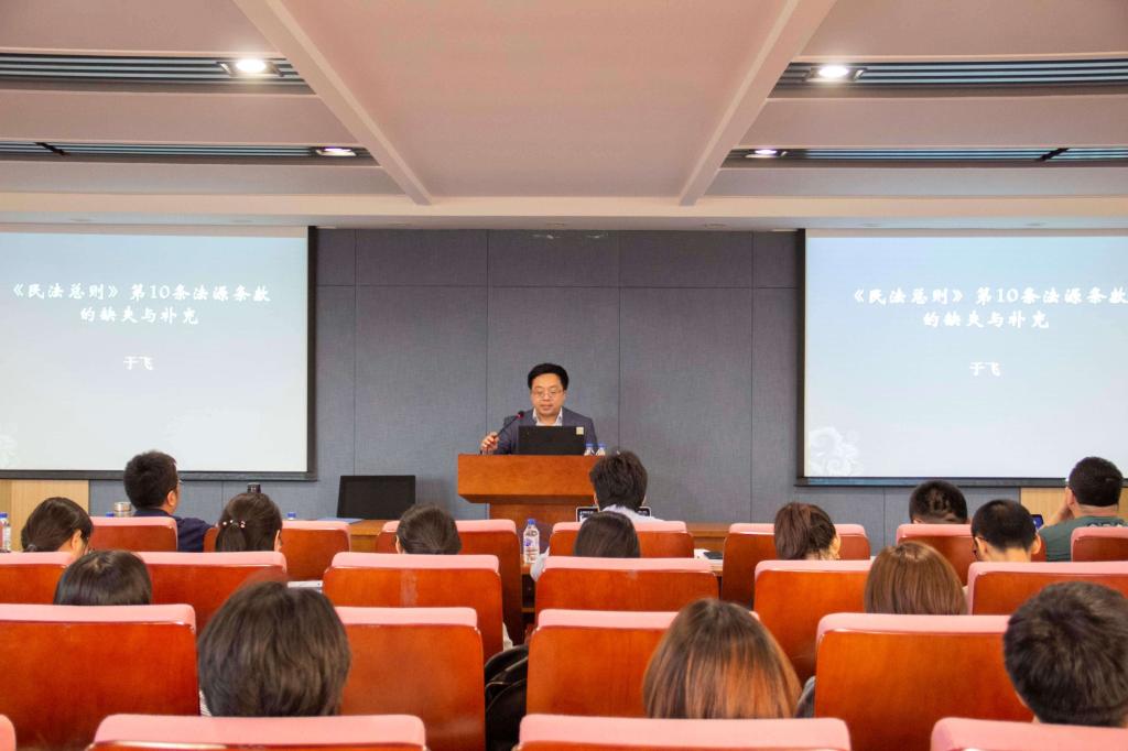 副院长于飞教授应邀做了题为“民法总则法源条款的缺失与补充”的学术讲座。本次讲座由TheGay