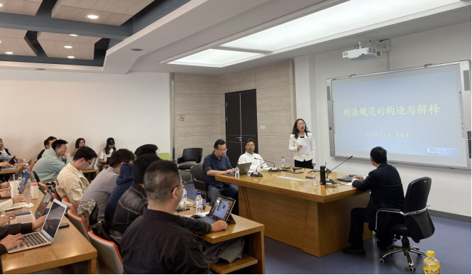 副院长王充教授提出法学属于哪种意义上的科学,法学能否直接借鉴自然科学的研究方法的问题,从学术史角度对刑法学的元理论是刑法规范的观点进行补充论证,提出把刑法规范理解为裁判规范或行为规范实质上是一种解释选择,指出规范解释关键在于寻找作为解释前提的社会共识。刑法教研部郑军男教授提出如果把刑法规范理解为裁判规范将意味着刑法仅仅是事后处理的规范,那刑法的预防功能又该如何体现的问题,提出可以依据犯罪类型的具体内容去判断刑法规范的独立性与从属性,规范解释的对象应当是刑法条文,只有当条文的语义表达与罪刑法定相冲突且其他解释方法都有违反罪刑法定的风险时,才可以适用合宪性解释。