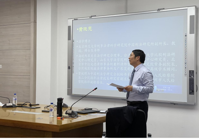 中心校区经信教学楼D区203室举行。北京师范大学刑事法律科学研究院黄晓亮教授应邀做了题为“刑法规范的构造与解释”的专题讲座。本次讲座由刑法教研部李海滢教授主持。