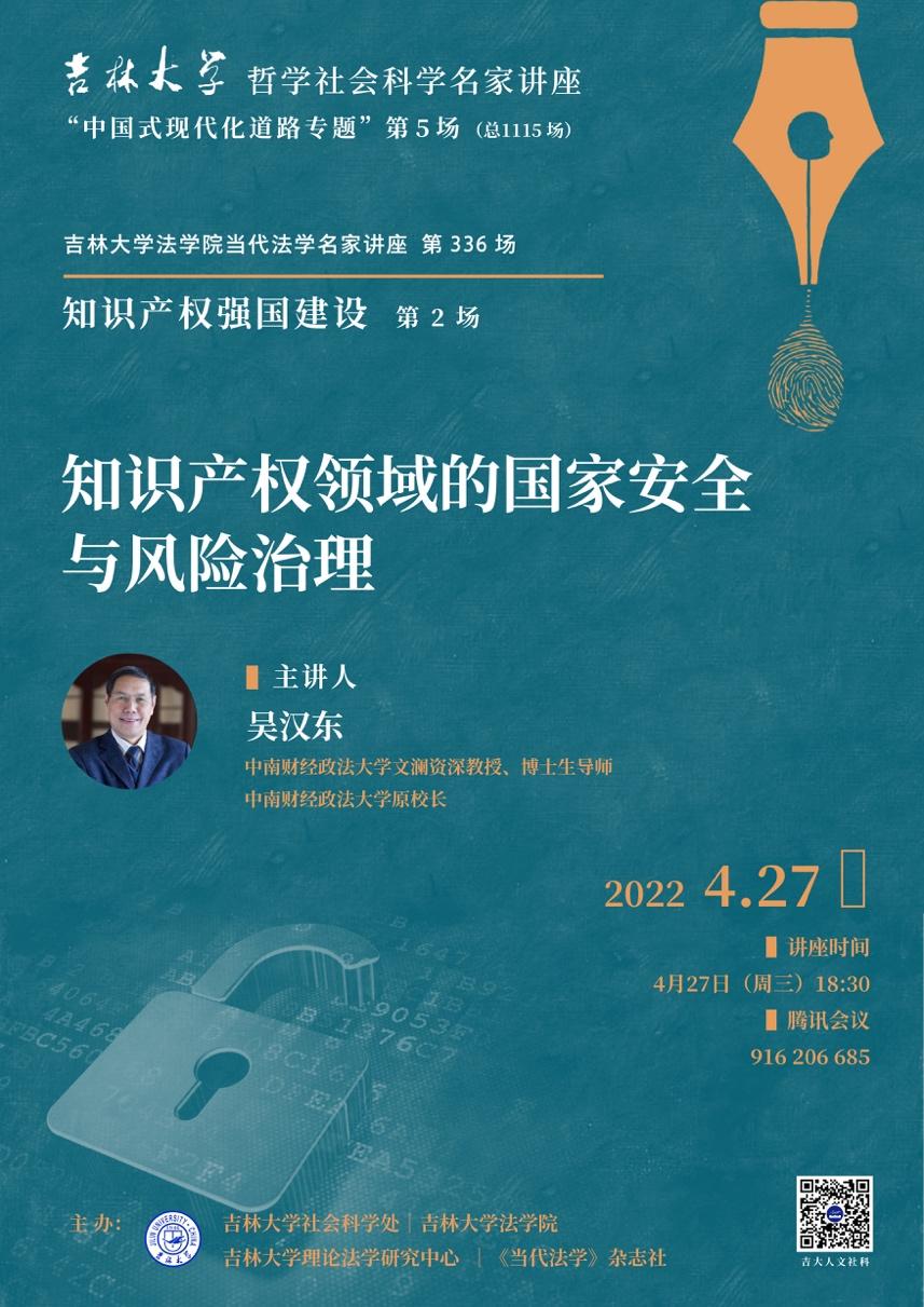 知识产权法学学科的发展,也给予了诸多的提携与帮助。吴汉东教授关于知识产权领域的国家安全与风险治理的高水平讲座,也将给吉大师生带来更多感悟与思考。