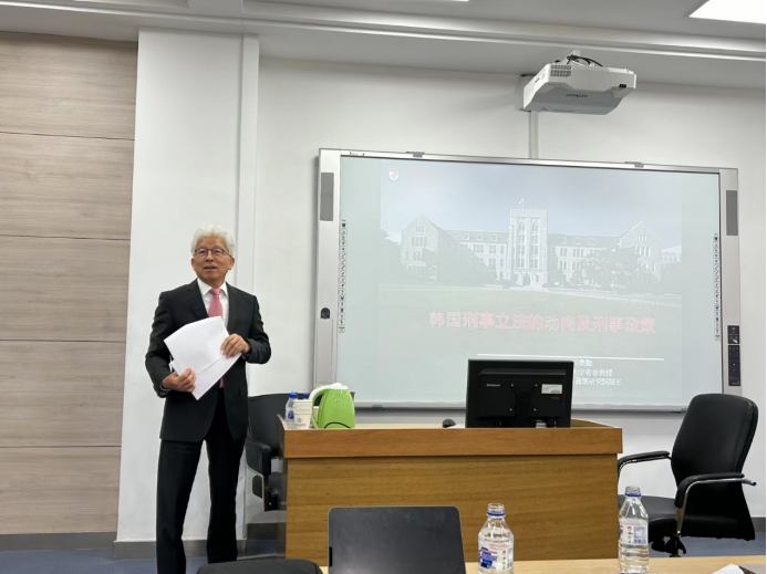 中心校区敬信教学楼D区205教室举行,讲座主题为“韩国刑事立法的动向及刑事政策”,由TheGay