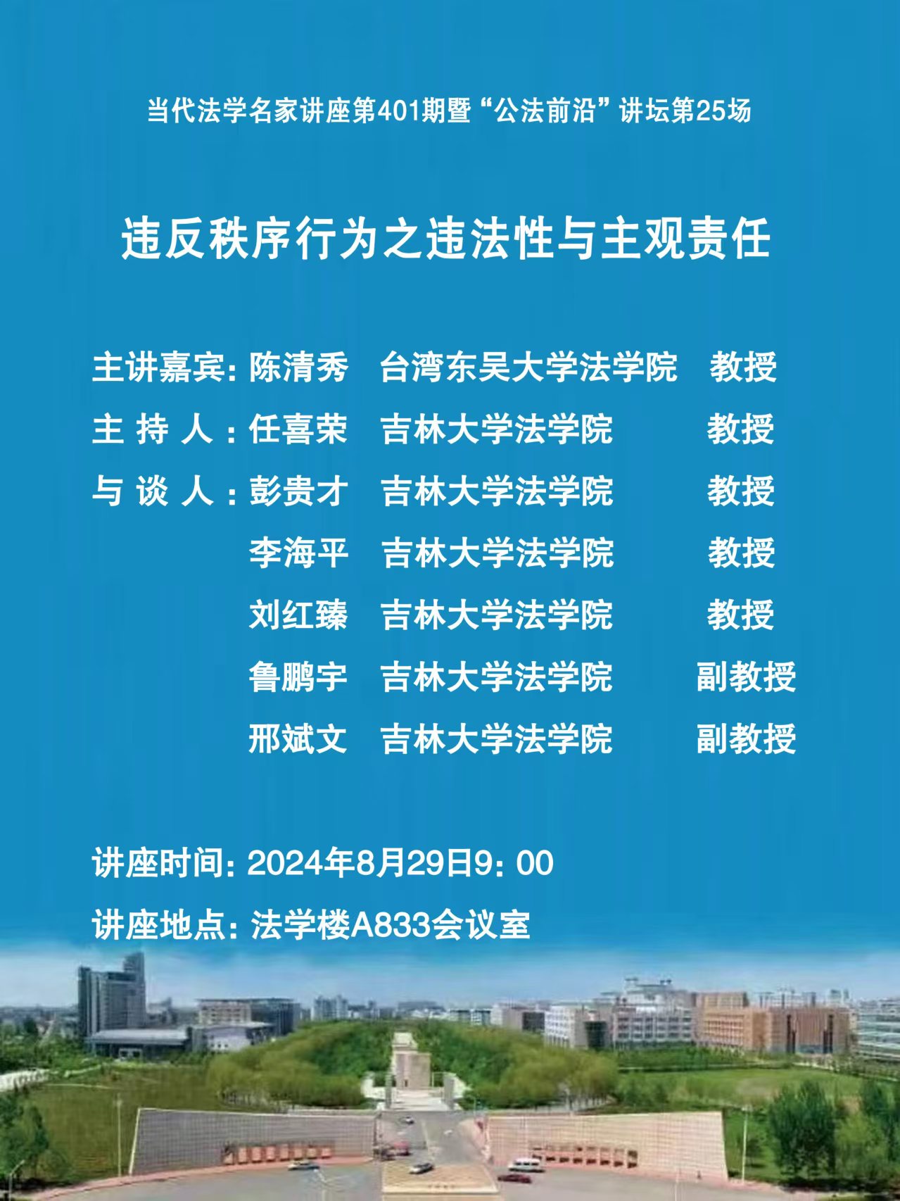 上一篇:当代法学名家讲座(402)暨“公法前沿”讲坛第26场 下一篇:第四届君道论坛暨“法典化时代劳动法理论与制度创新发展”高峰论坛正式通知