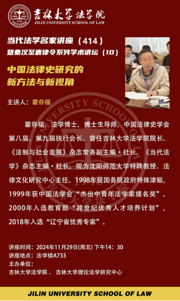 讲座题目:中国法律史研究的新方法与新视角