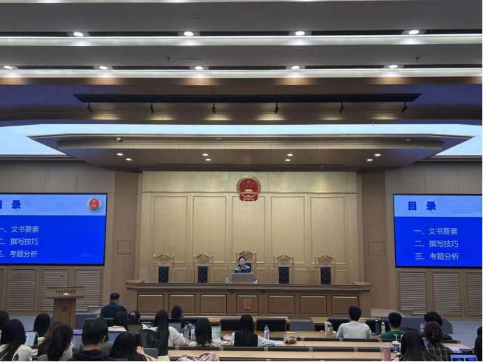 开展法律文书写作专题讲座,围绕“公诉意见书撰写要点”为本届全国法律专业学位研究生法律文书写作大赛提供专业指导和赛前辅导。学院全体2024级法律硕士研究生参与。