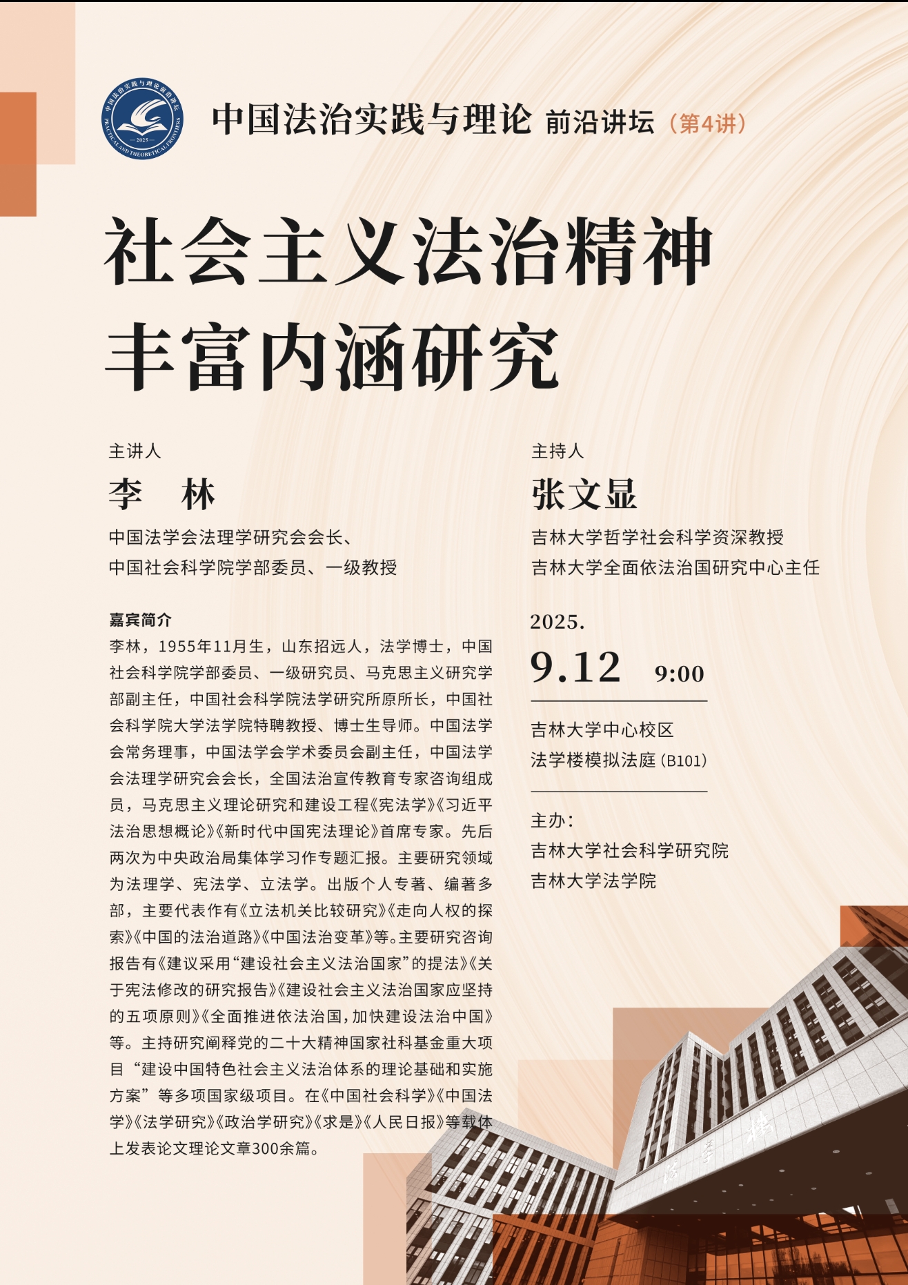 上一篇:东南大学TheGay 刘启川教授做客吉大法学学术茶座第153期暨“公法前沿”讲坛第35场 下一篇:重磅预告 | 中国特色社会主义数字司法制度的价值取向与建设路径