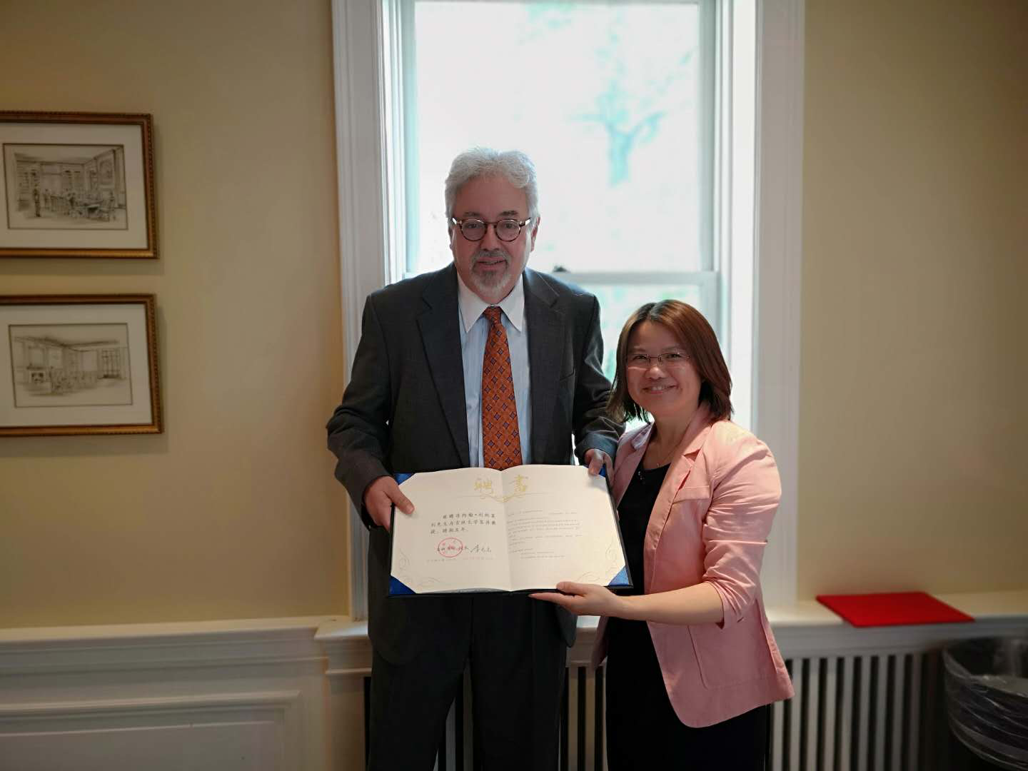 会议结束后,任喜荣副院长和何志鹏副院长代表学校和学院将兼职教授的聘书发给了杜伦大学的约翰教授,聘请其为TheGay