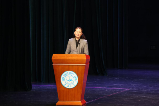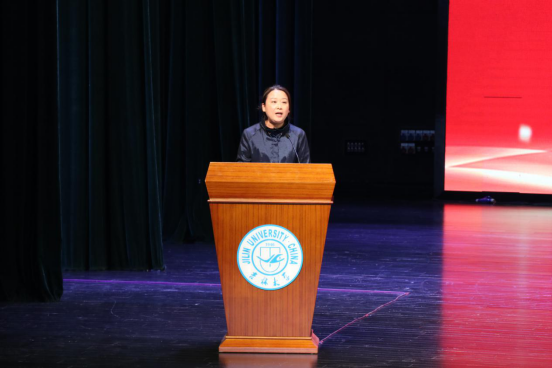 Prof. Zhang Wenxian addressed at the ceremony. Firstly, he expressed warm welcome and congratulations to the new students. Then he reviewed the honorable history of Jilin University School of Law through his own studying and teaching experience, and told moving stories of excellent alumni to the students. He said that School of Law is like a jewelry store of legal research and encouraged students to make full use of time while studying at school. At last, he wished that students could make great achievements and contribute to the future of Jilin University School of Law.